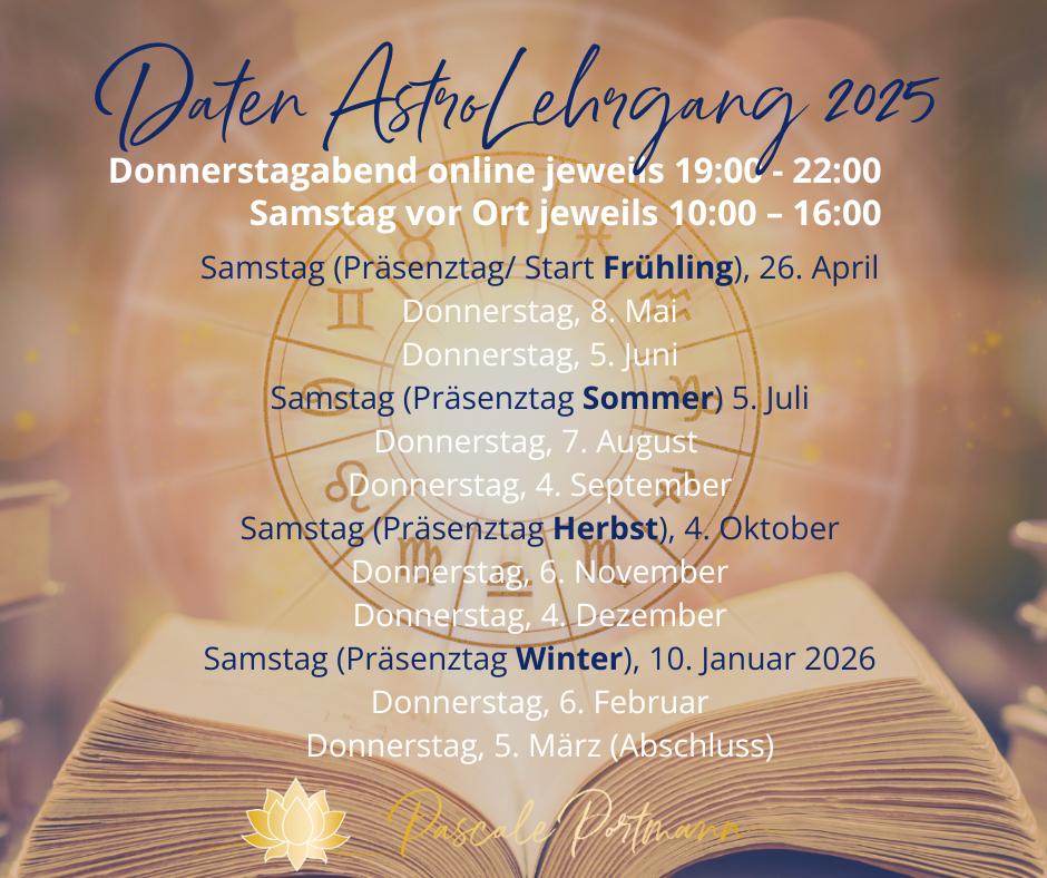 Für ein fundiertes Verständnis dieser weiterführenden astrologischen Themen bieten Dir die Online-Masterclass oder der einjährige Astrologie-Lehrgang die astrologischen Grundlagen.